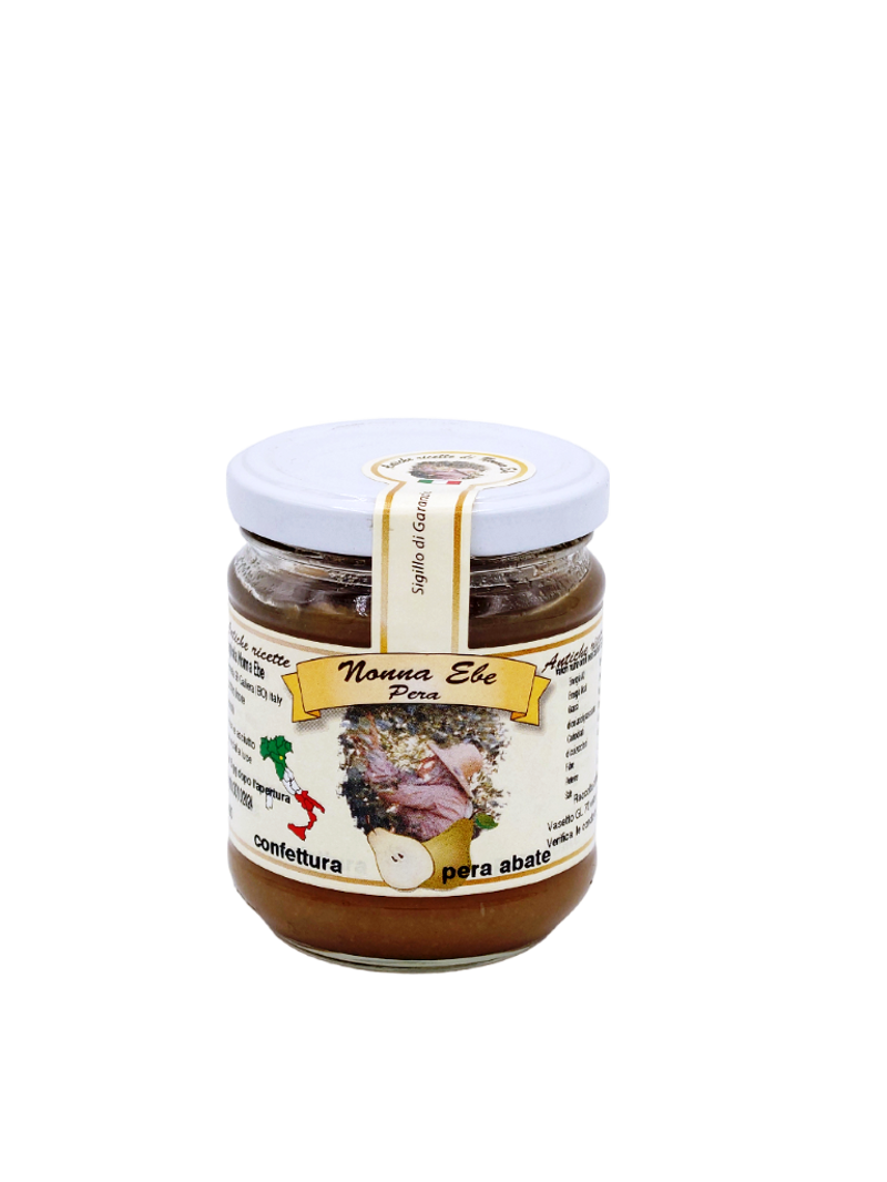 Ingredienti: pere Abate (76%), zucchero e limone Frutta utilizzata 130g per 100 g di prodotto Valori nutrizionali medi calcolati x 100g: Energia 824 KJ; Energia 194 Kcal Grassi 0,0 g di cui acidi grassi saturi 0,0 g; Carboidrati 47,4 g di cui zuccheri 47,4 g; Fibre 1,7 g; Proteine 0,1 g; Sale 0,0 g Consigli per la conservazione: Conservare in luogo fresco e asciutto al riparo da luce e fonti di calore. Conservare in frigo per massimo 5 giorni dopo l'apertura. Raccolta differenziata - Verifica le disposizioni del tuo Comune Vasetto GL 70 Vetro Coperchio C/FE 91 Metallo