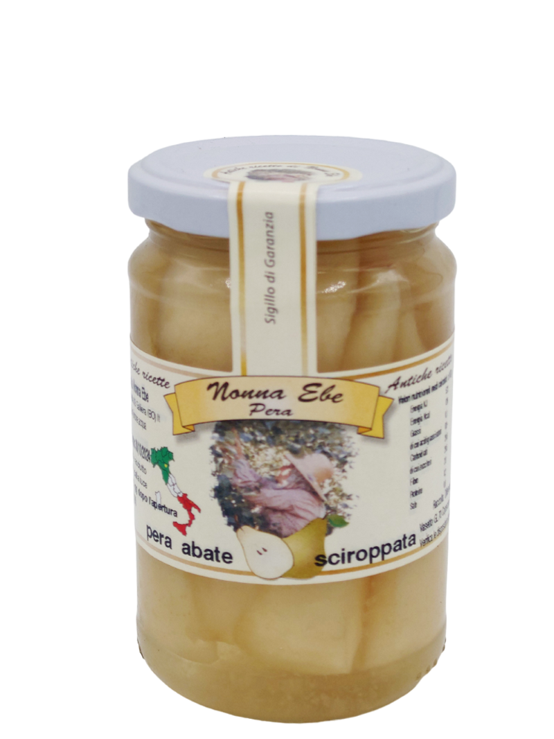 Ingredienti: pere Abate (52%), acqua, zucchero, limone Frutta in sciroppo di zuccheroValori nutrizionali medi