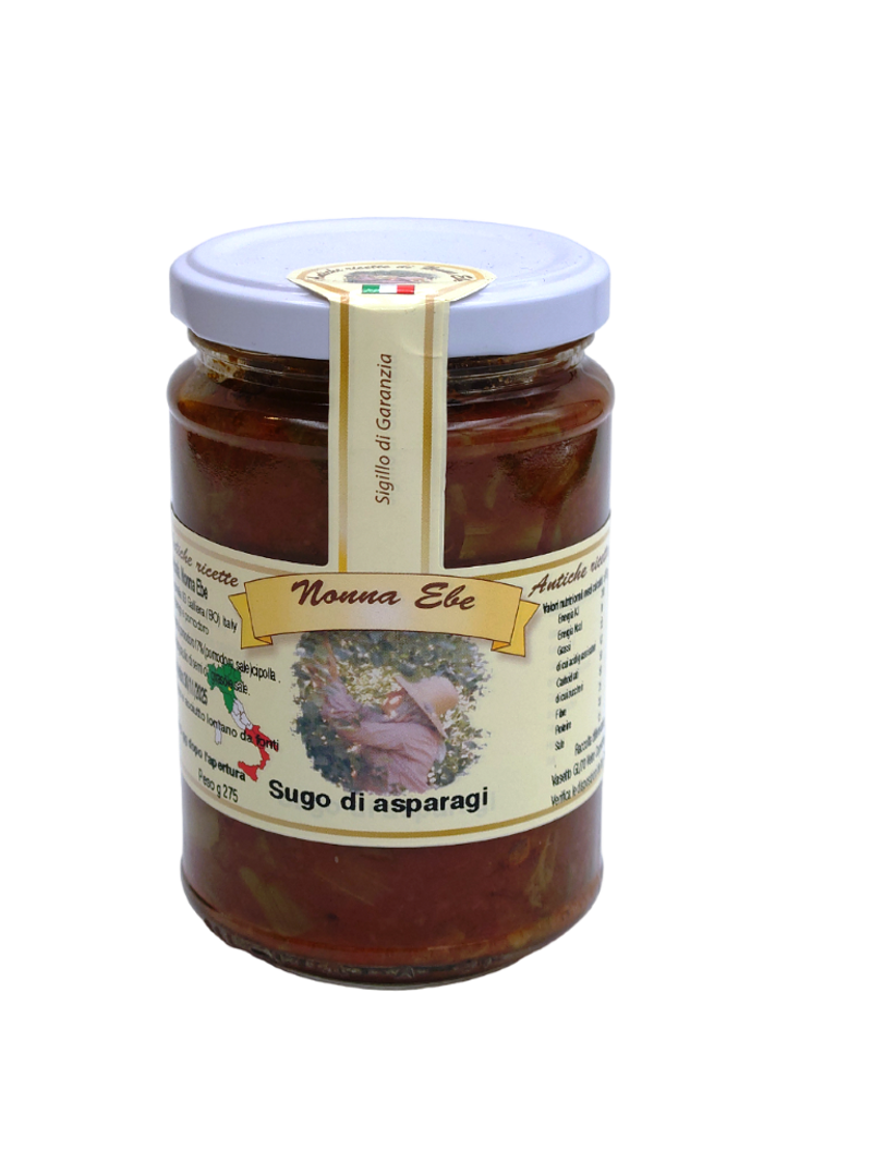 Conserva vegetale a base di asparagi e pomodoro Ingredienti: asparagi (57%), conserva di pomodoro 17% (polpa di pomodoro e sale), cipolla, aceto di vino, olio di semi di arachidi, sale Valori nutrizionali medi calcolati x 100g: Energia 318 KJ; Energia 70 Kcal Grassi 3,3 g di cui acidi grassi saturi 0,3 g; Carboidrati 5 g di cui zuccheri 5 g; Fibre 2,5 g; Proteine 3,8 g; Sale 1,5 g Consigli per la conservazione: Conservare in luogo fresco e asciutto al riparo da luce e fonti di calore. Conservare in frigo per massimo 5 giorni dopo l'apertura. Raccolta differenziata - Verifica le disposizioni del tuo Comune Vasetto GL 70 Vetro Coperchio C/FE 91 Metallo